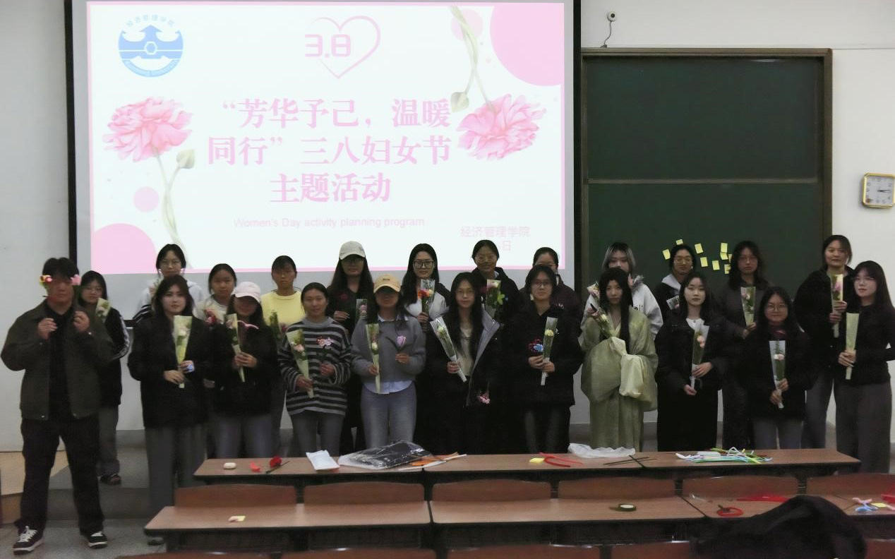 此次活动以丰富多样的形式,展现了经济管理学院(自贸学院)女性自信昂扬、温柔坚定的精神风貌,让大家在欢声笑语中感受节日温暖,收获成长与力量。活动最后,学院为在场的每一位女性送上了一枝鲜花,愿大家都能自在绽放、向阳而行,以芳华姿态奔赴热爱,在青春赛道上书写属于自己的精彩篇章!