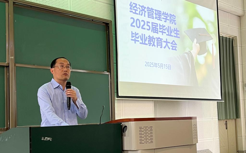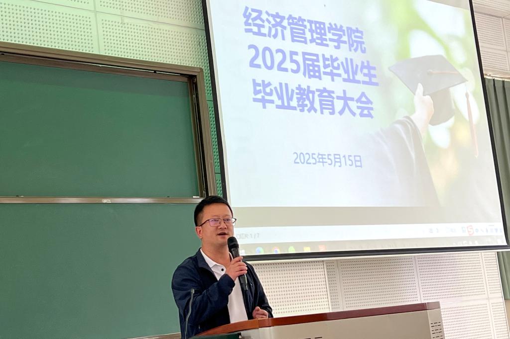 5月15日,经济管理学院在博雅楼2101隆重举行2025届毕业生毕业教育大会。学院领导、教师代表与全体毕业生齐聚一堂,共叙师生情谊,共话青春成长,为即将踏上新征程的学子送上深切祝福与殷殷嘱托。大会由学院党委副书记鲍鲲老师主持。